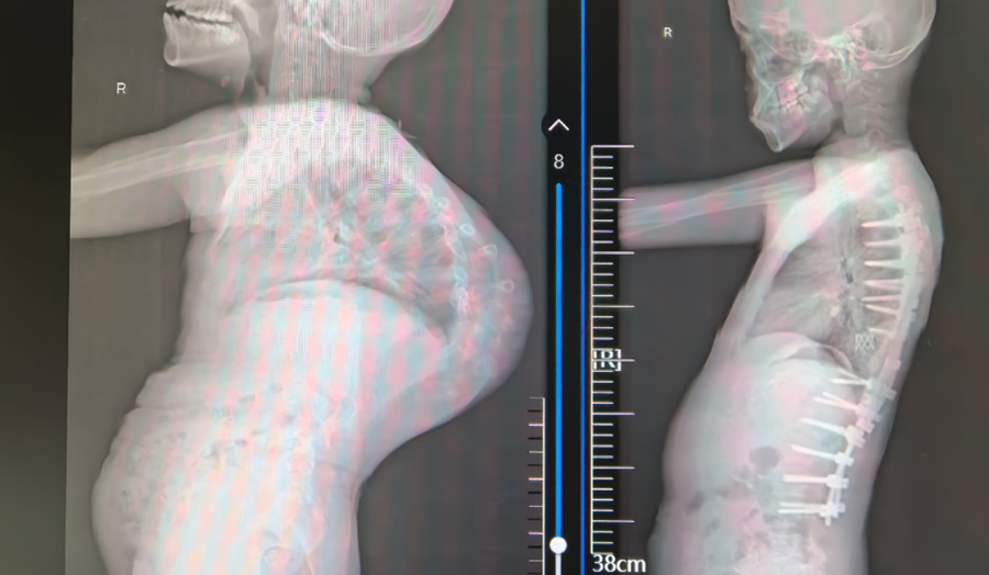 随着小禹长大,“小山坡”越来越明显,脊髓被扭曲的脊柱拽得紧绷,全身还散着淡褐色牛奶咖啡斑,这是一种遗传疾病——神经纤维瘤病的典型信号。家人带他跑了多家医院,得到的答案却如出一辙:脊柱侧弯已近乎150度,不仅侧凸,还有后凸,脊髓受压严重,最严重区域的脊柱基本快掉头生长,再加上肺部被挤压变形,手术可能致瘫痪,风险太高。