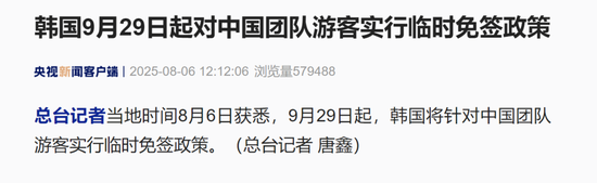 总台记者当地时间8月6日获悉,9月29日起专业股票配资利息,韩国将针对中国团队游客实行临时免签政策。